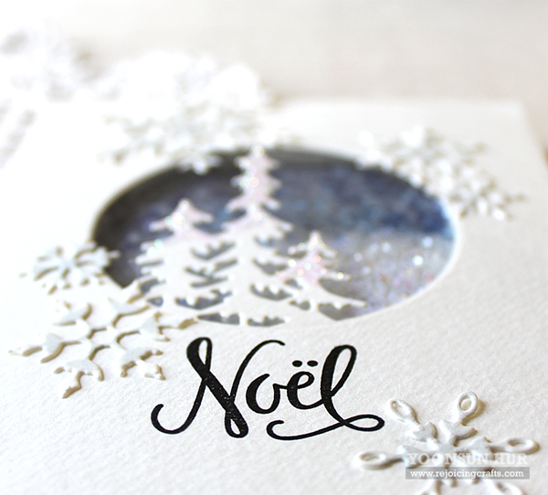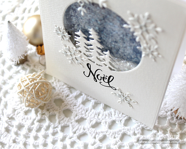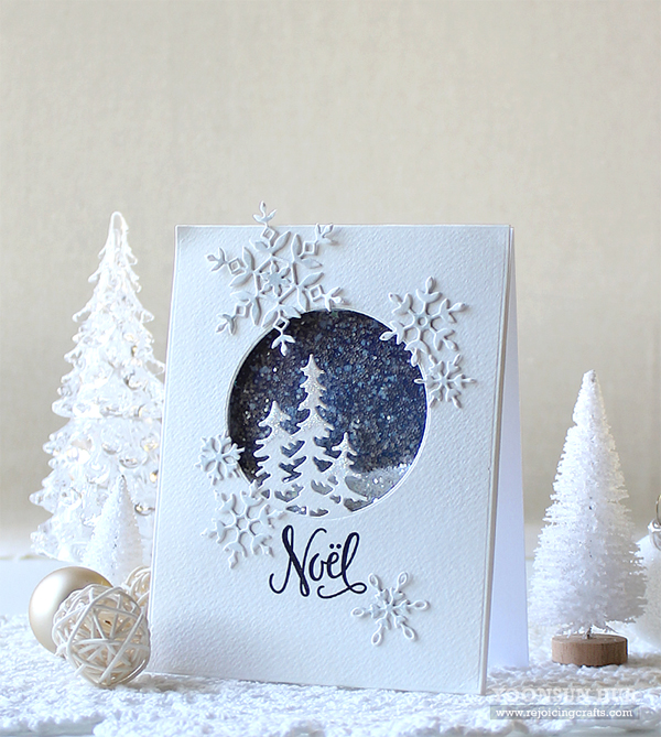 Beautiful card – love the snowflake embellishments and the white-on-white colour combo that really lets the shaker window shine!