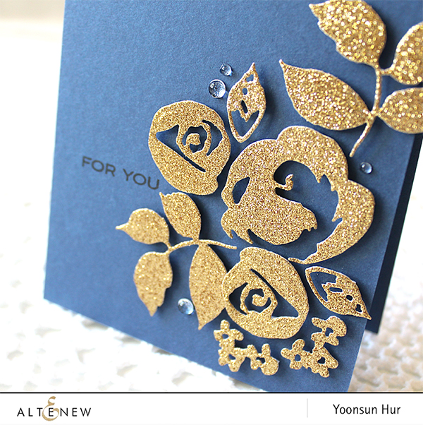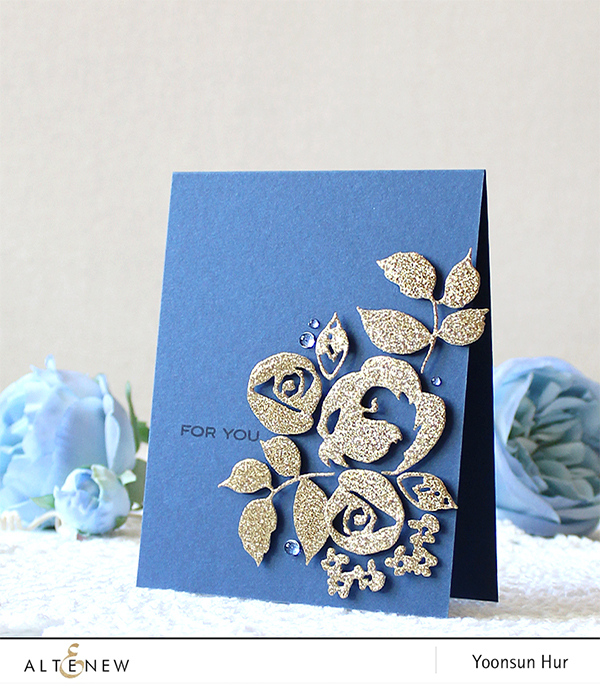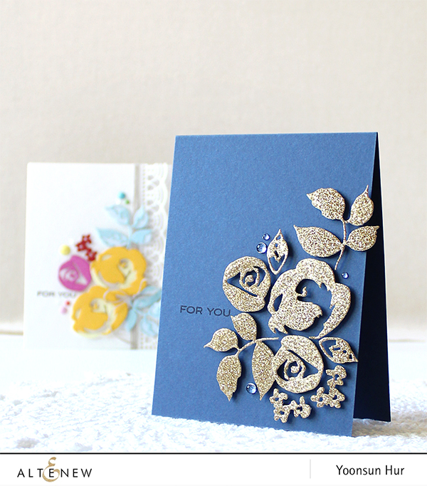 For my second card, I used glitter gold flowers on navy card base!! It’s simply beautiful and elegant!