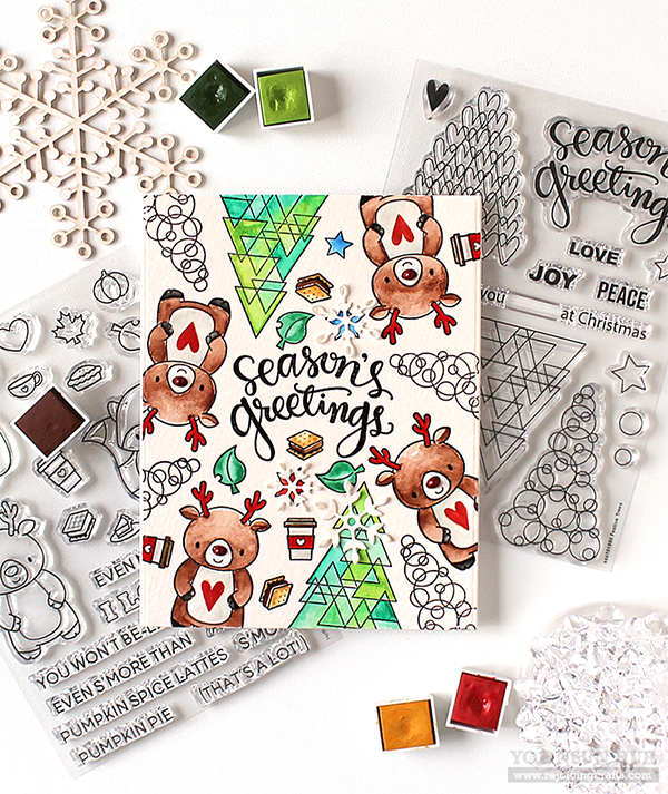 I have a fun Christmas card today using Simon Says Stamp STAMPtember®Heffy Doodle More than S’Mores & Festive Trees stamp sets.