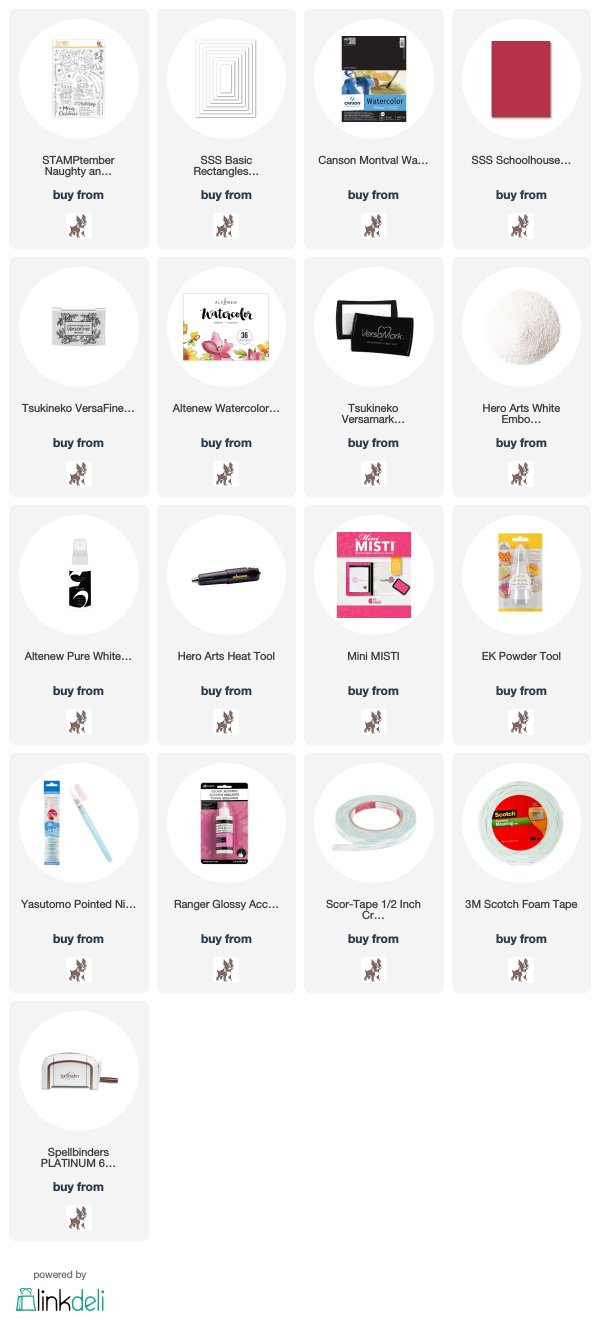 I believe you’re enjoying the most awesome craft event, STAMPtember®, these days! Today I have a watercoloured elves card with the STAMPtember® Naughty and Nice Elves stamp set.