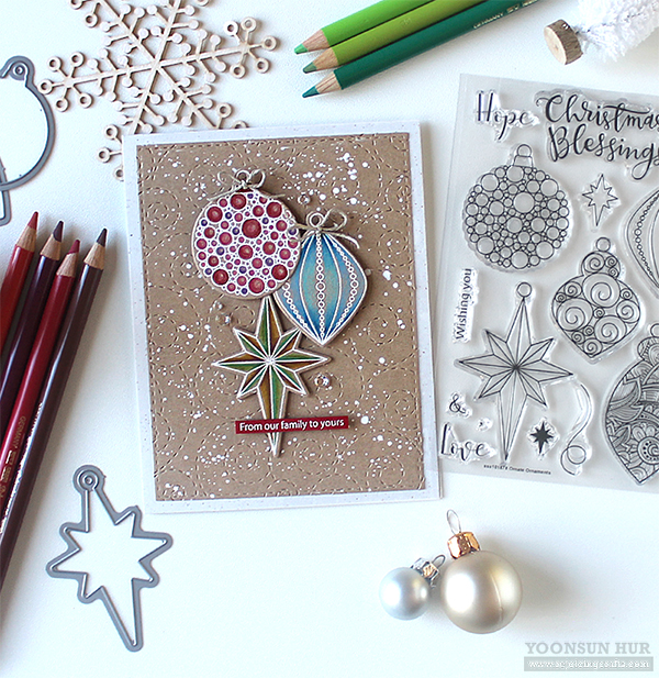 To celebrate this special day, I have a couple of fun Christmas cards with the SSS Ornate Ornaments stamp & die set.