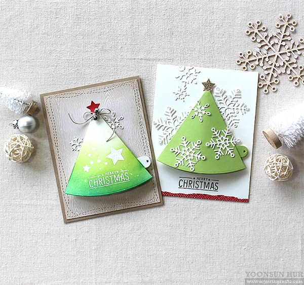 I have a couple of fun Christmas tree cards today using the Waffle Flower Christmas Tree Stamp & (so inventive) Pull-tab Tree Die.