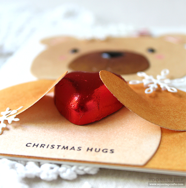I decorated the bear with tiny snowflakes. For the sentiment, I used the Tiny Words Christmas stamp set.