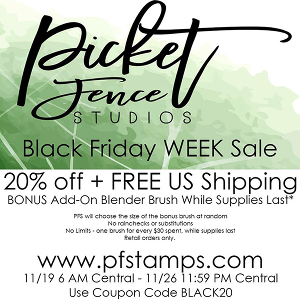 PICKET FENCE STUDIOS: 20% off the entire store! And, get an add-on Blender Brush while supplies last. The code “BLACK20“.