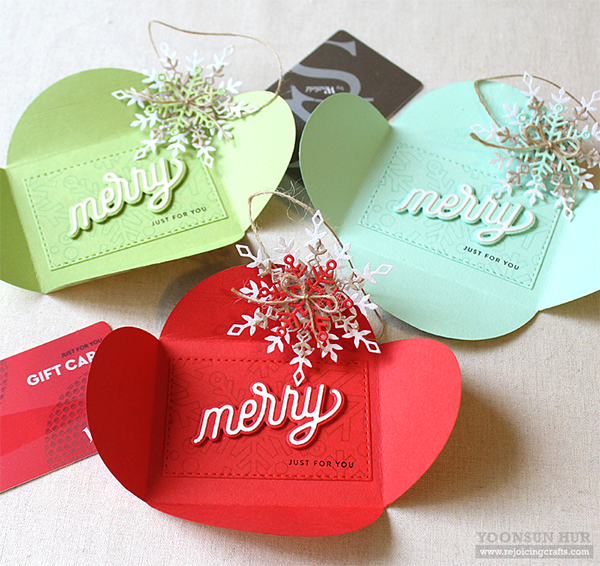 Inside the gift card envelope, I added Christmas greetings using CZ Design Merry die & Tiny Words Christmas stamp set.