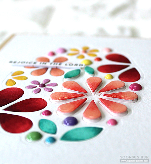 With some flower petals & leaves, I adhered them using foam tape, then added glossy accents as shown in the picture.