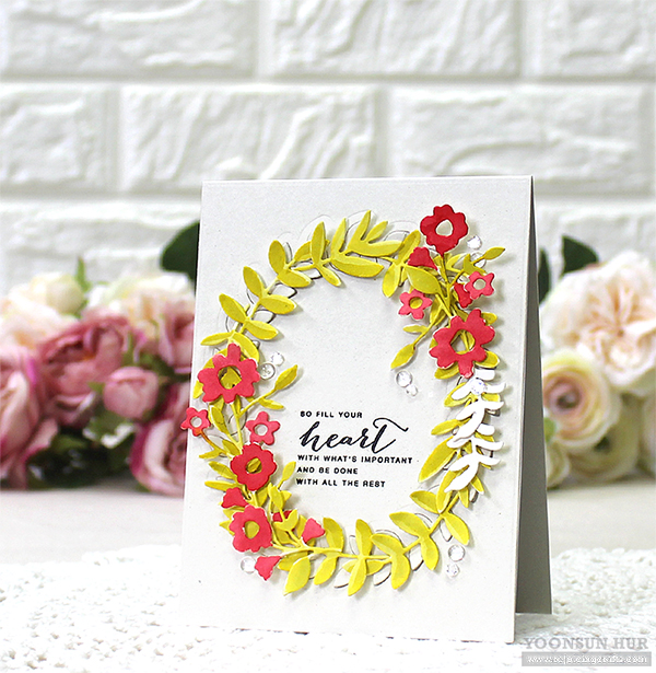 I’m up on the Pinkfresh Studio blog today sharing two watercoloured floral wreath cards using Oval Foliage Die & Heart and Soul Stamp Set along with other products.