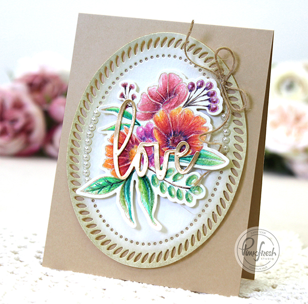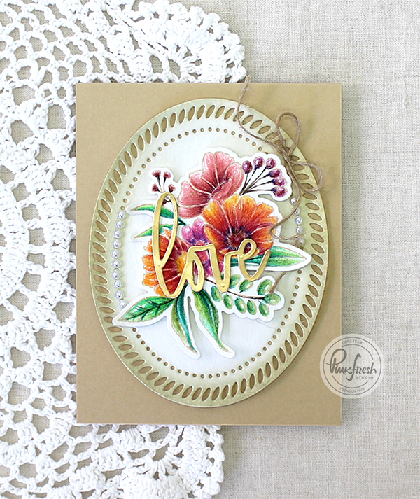I die cut the word “Love” from metallic gold card stock using the Classic Words Die Set.