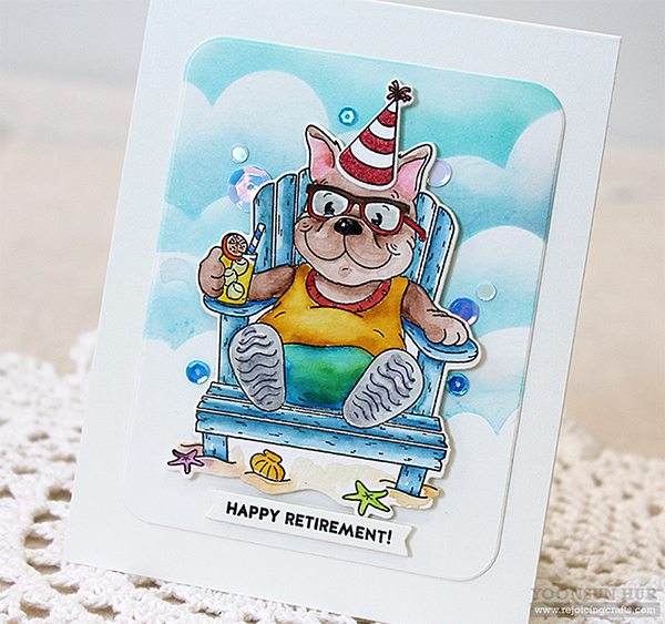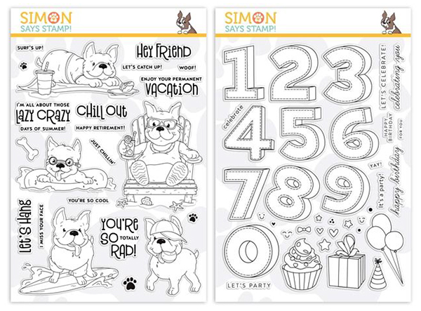 Here is another fun card with the Chillin Frenchies Stamp & Die Set! I stamped & watercoloured images, and die cut them with matching dies.