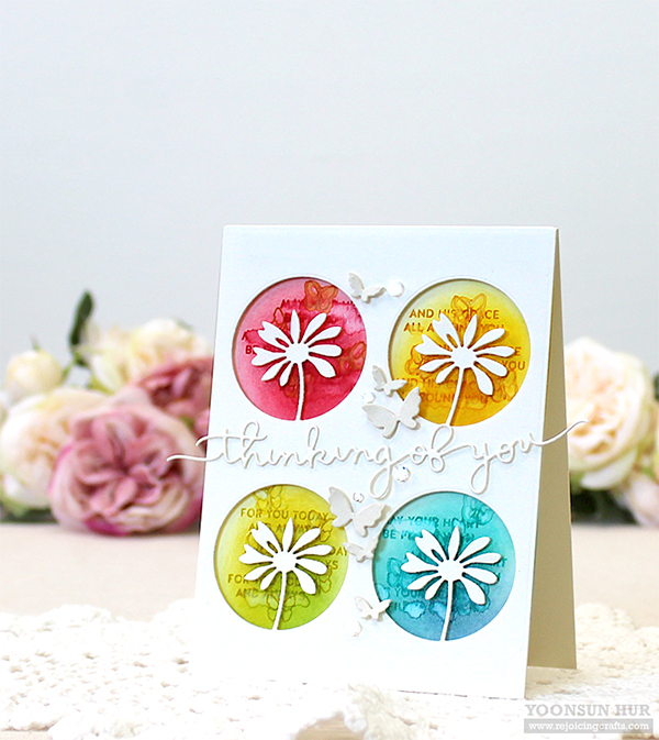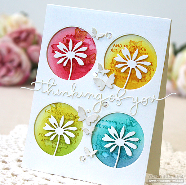 Today I want to share with you my floral “Thinking of You” card using the Peeking Daisy Die along with other SSS products.