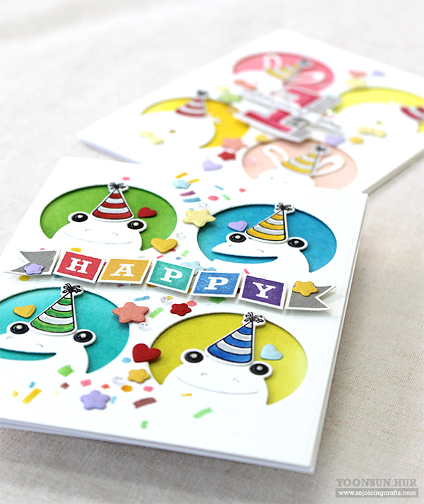 I added lots of confetti because of “HAPPY” birthday cards!! :D