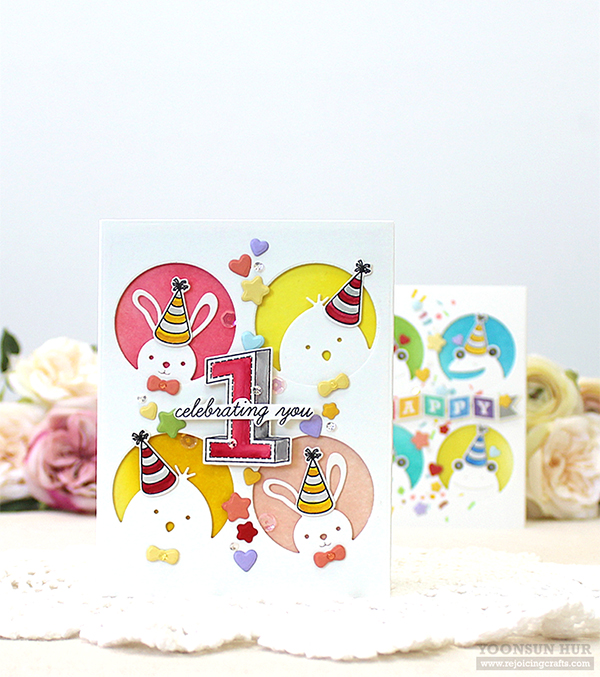 And, my second card is a baby’s first birthday card with the Peeking Bunny & Peeking Chick Dies.