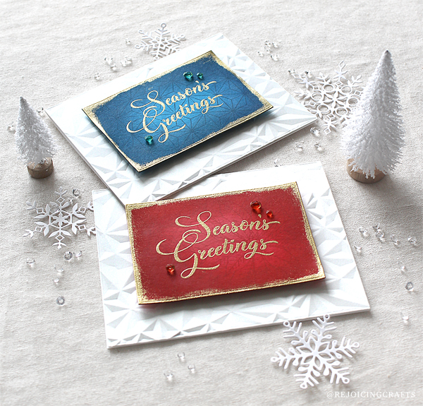 My modern and simple Christmas cards today are inspired by Day 2 of Online Card Class Holiday Card Workshop 2021. Ink blending + heat embossing – the results are indeed beautiful!!