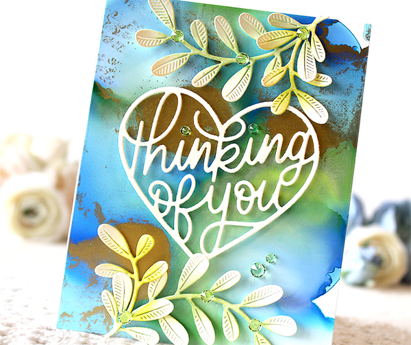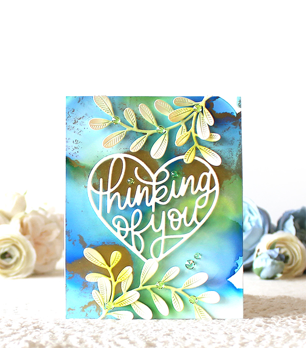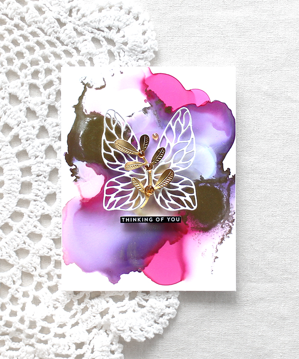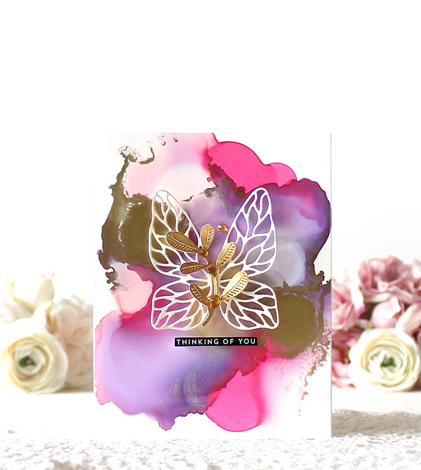 My first butterfly card is a proposal card. I die cut flowers & leaves from watercolour paper using the Hero Arts Envelope Accessorise dies, coloured them with Altenew Watercolor 36 pan set. I also die cut wedding ring from SSS Matte Gold Mirror cardstock using the SSS Wedding Rings dies.