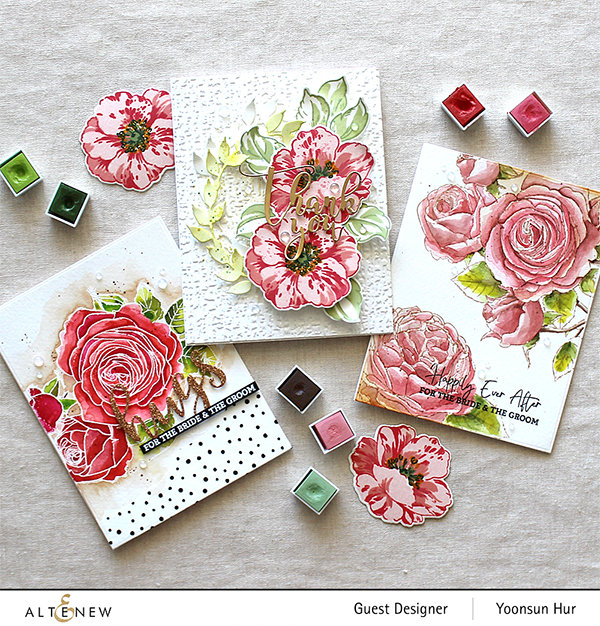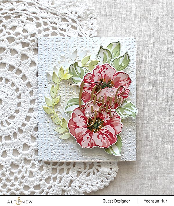 For my first card, I am featuring the new Queen Anemone along with other Altenew goodies – as everyone knows, Altenew is the best for layering flower stamps!