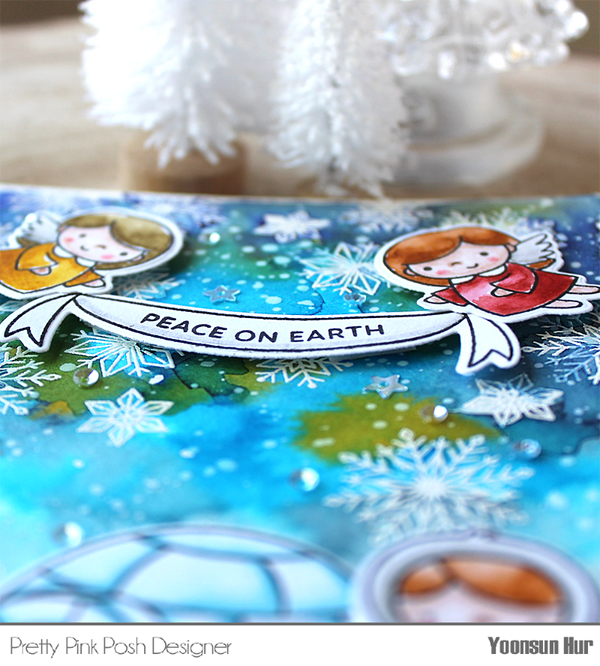 For my last card, I used the Angel Friends stamp & die set along with the Winter Wonderland set. Yay! I love Christmas card!!