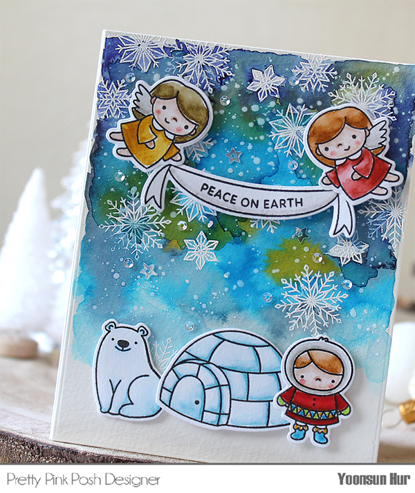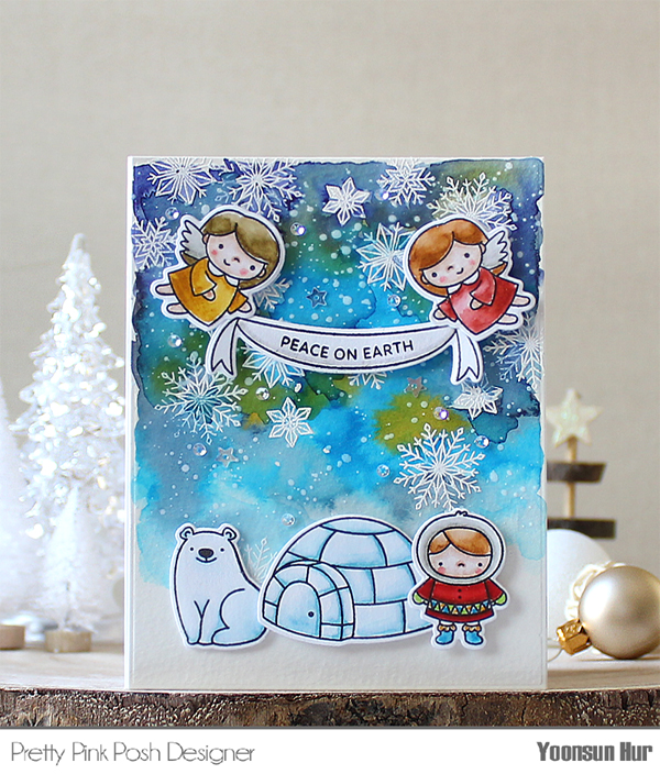For my last card, I used the Angel Friends stamp & die set along with the Winter Wonderland set. Yay! I love Christmas card!!