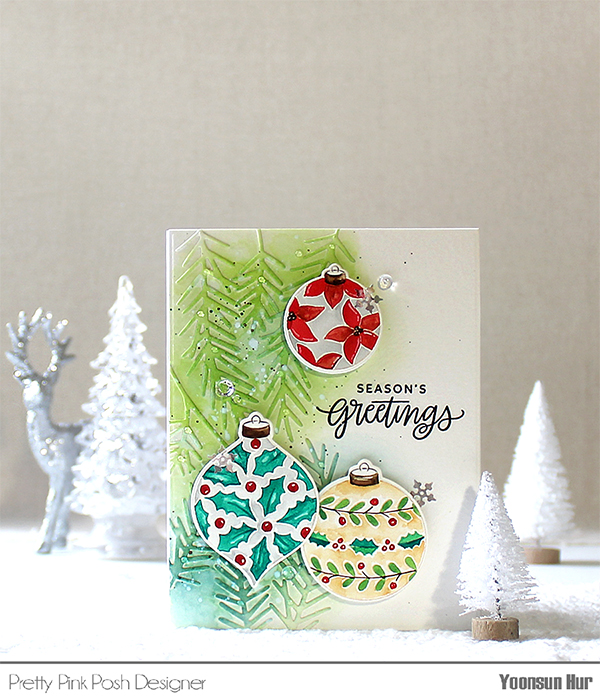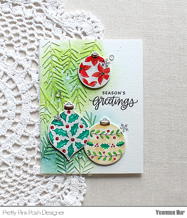 For my first card, I am featuring the Decorative Ornaments Stamp & Die Set along with the Pine Sprigs Die Set.