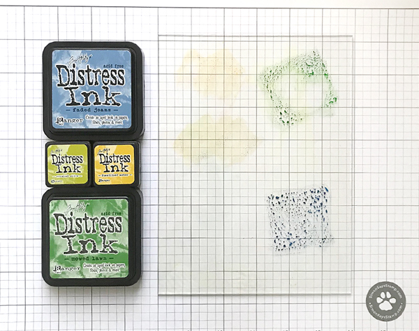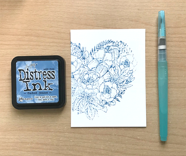 As many of you already know, Distress inks react with water so I just freely brushed part of stamped image with water brush as shown in the picture.