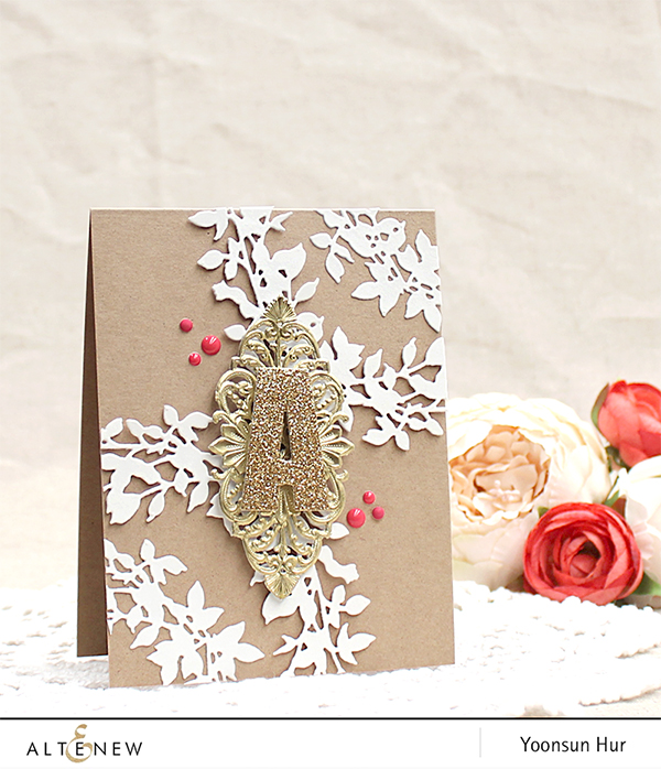 For my first card, I made a card to celebrate a wedding. For the background panel, I die cut from thick white cardstock using an A2 sized Paper Rose Studio Pierced Rectangles Panel die first, then dry embossed the panel using Altenew Mod Squares 3D embossing folder. (By the way, Paper Rose Studio is a craft company based in Australia. As a fellow Australian, I feel so proud to know that such a wonderful craft company is from here. :D)