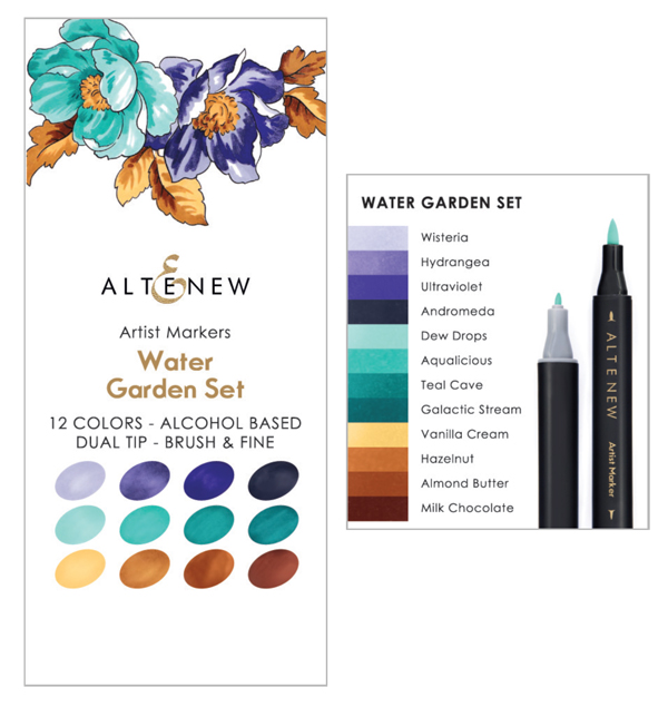 In March, Altenew released a gorgeous Coral Sunset Outline Stamp Set as their Paint-A-Flower.
