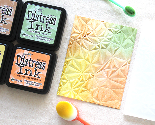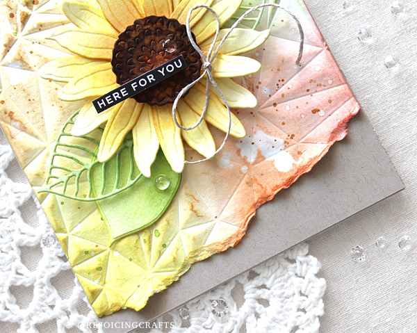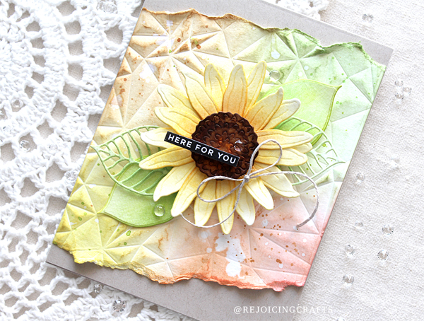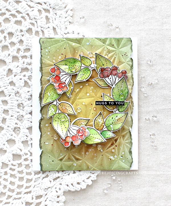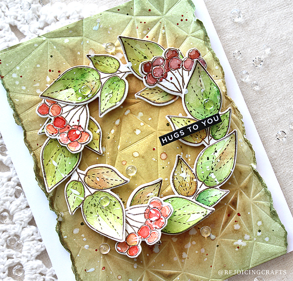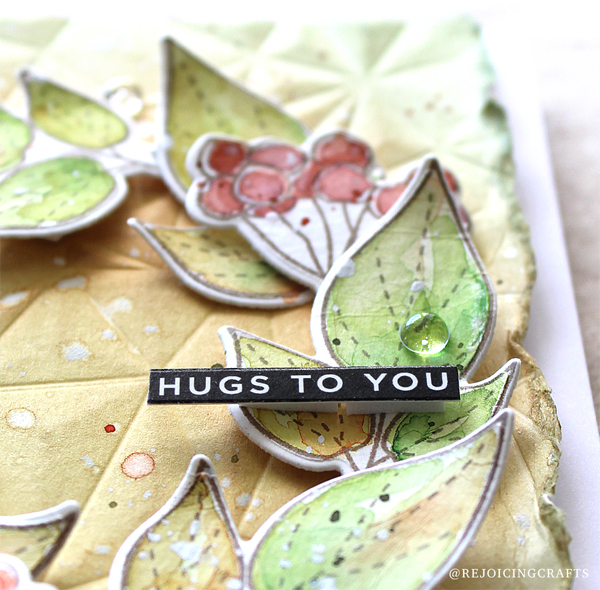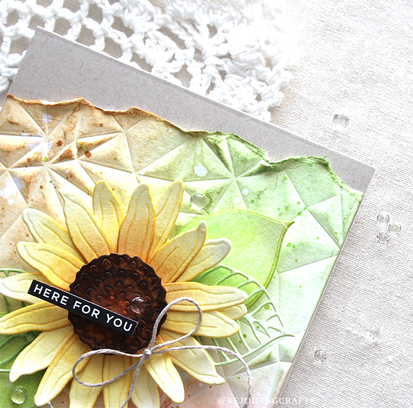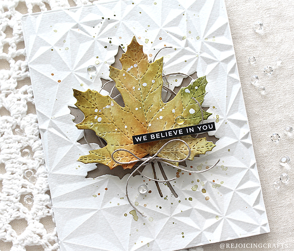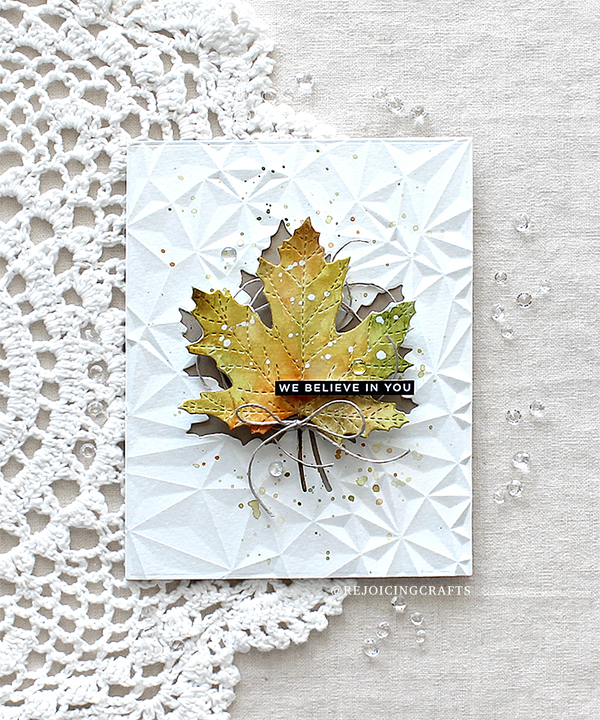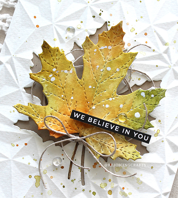 For this card, I used brand new Layered Foliage stencil and Grateful Script die.