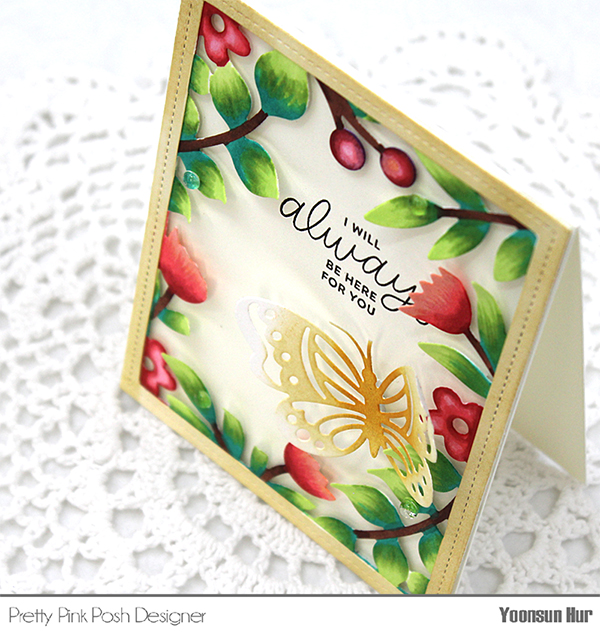 Once the sentiment panel was completely dry, I mounted it on white card base using double-sided tape first, and then added the
