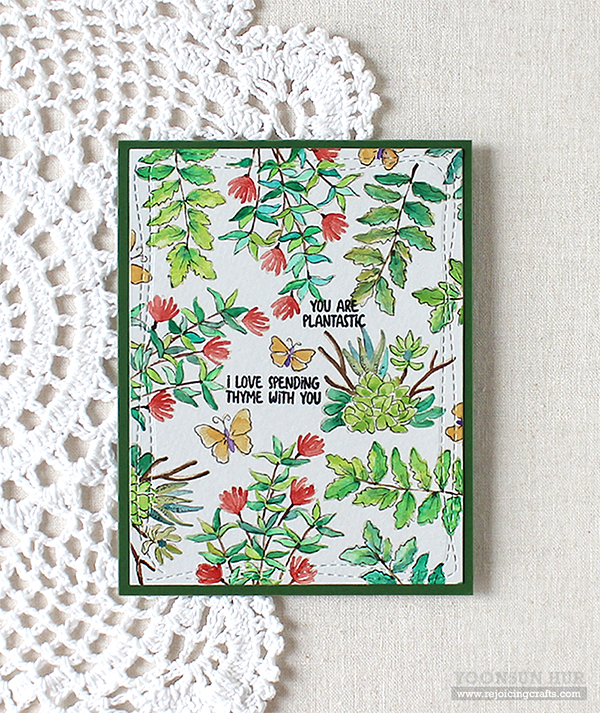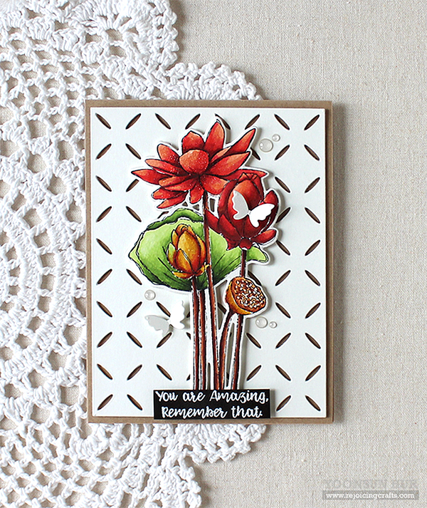 Once the sentiment panel was completely dry, I mounted it on white card base using double-sided tape first, and then added the