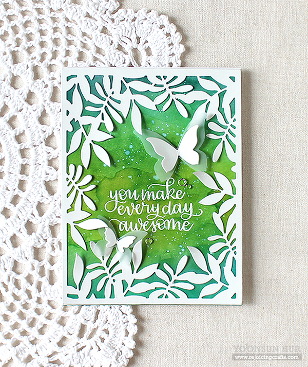 For the watercoloured butterfly panel, I die cut A2 sized rectangle panel from watercolour paper using