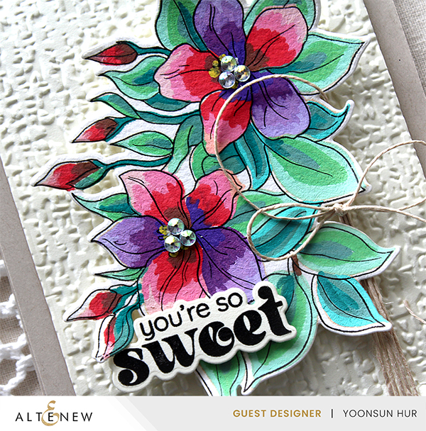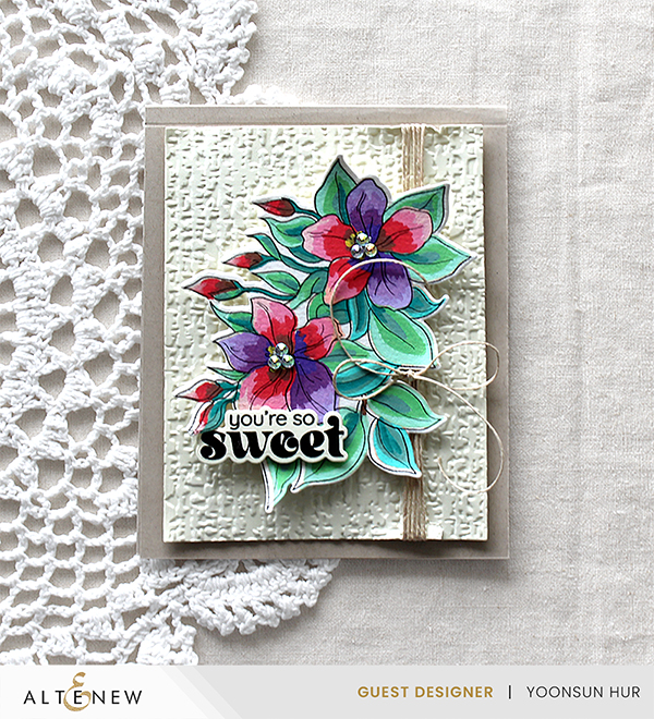 The main supply for my today’s cards is the Altenew Floating Foliage 3D Embossing Folder – the leafy background is really gorgeous, even just this leafy pattern on the white cardstock is so pretty, don’t you think?!!