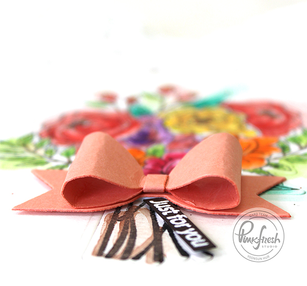 For a cute paper bow, I die cut each piece of the pattern from lemon yellow cardstock using the Flower Bouquet and a Bow die set. I then assembled it using double-sided tape.
