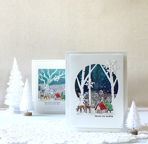 This is what I made in December last year. I love making snowy winter scene with tree window dies so I couldn’t resist making another beautiful winter night scene this year!