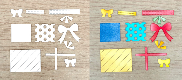 I die cut the Butterfly Shaker from white cardstock, the Smile Script from metallic gold cardstock, and then added them to the centre of the card front.