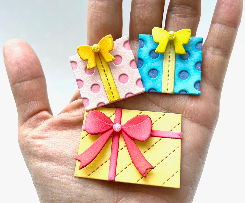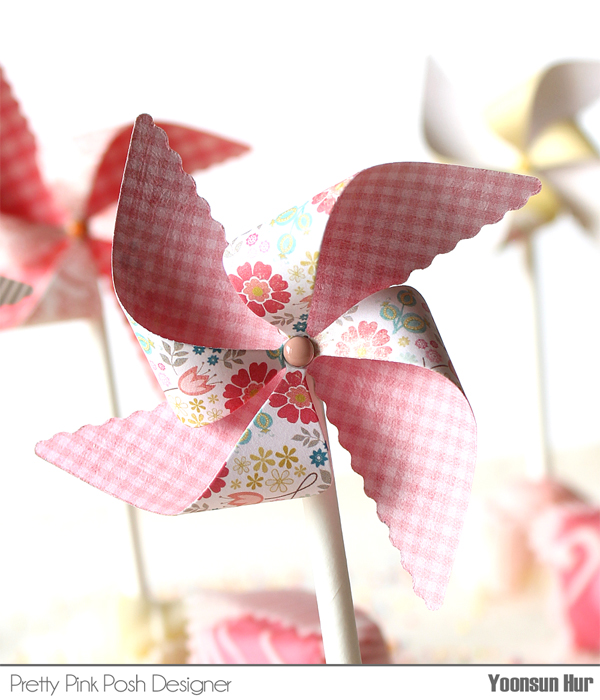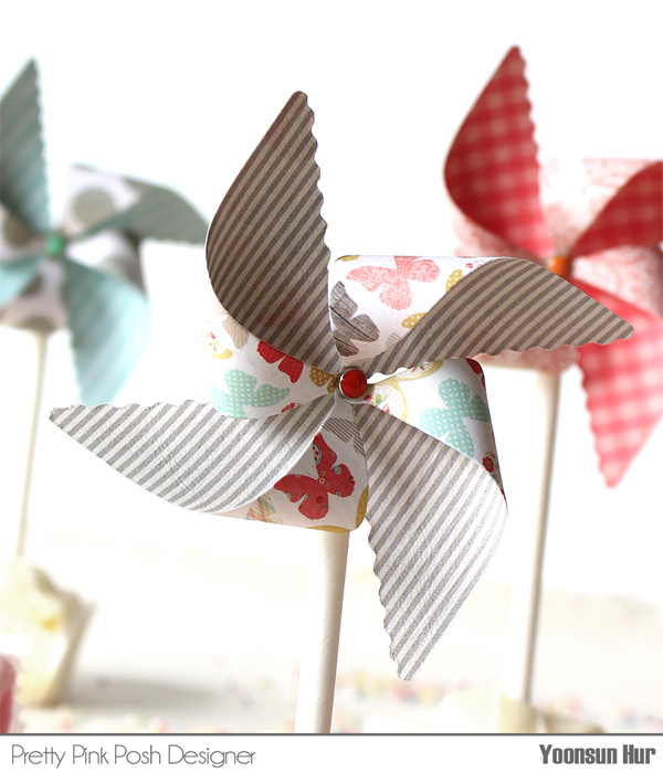 My last, but not least, project is cake topper with super-duper adorable 3D Pinwheels die set. It’s my most favourite among entire March products, Woohoo! One of my closest friends’ daughter, Danielle turns five next week and she looooves pinwheels! So I made these pinwheel cake toppers for Danielle. :D