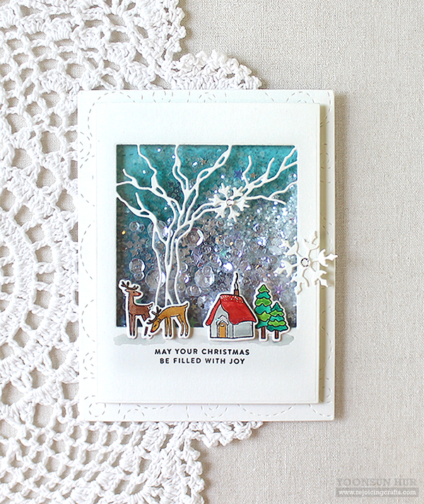 This is what I made in December last year. I love making snowy winter scene with tree window dies so I couldn’t resist making another beautiful winter night scene this year!