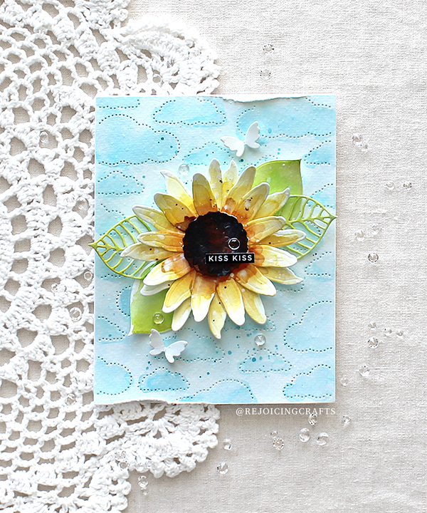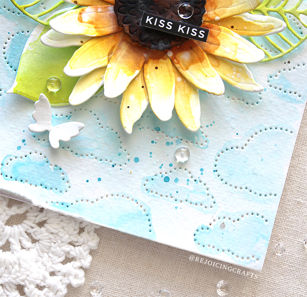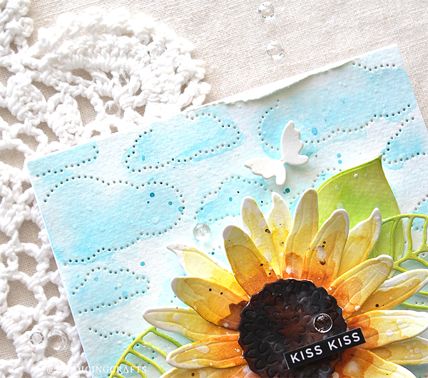 I simply die cut all elements, butterflies and tiny flowers, from white & coloured cardstock and arranged them on A2 sized white card using foam tape. It’s so easy to make, right? :)