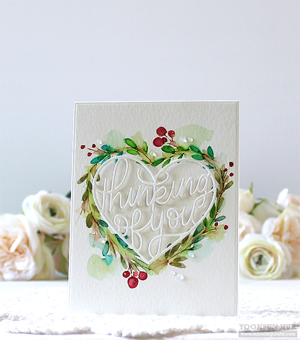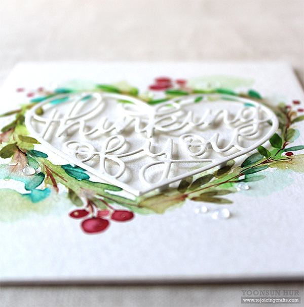 For my second card, I made a heart shaped floral wreath with the