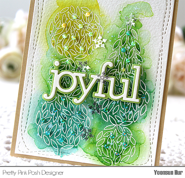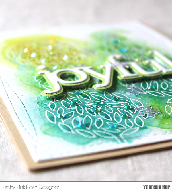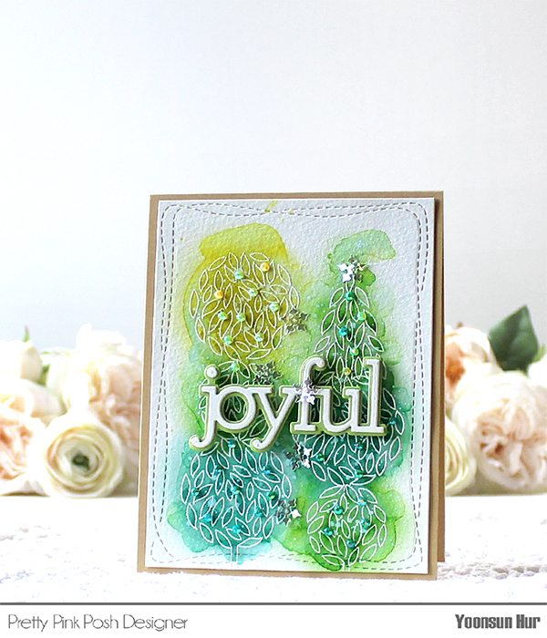 Once the panel was dry, I mounted it on kraft card base using double-sided tape first, and then added