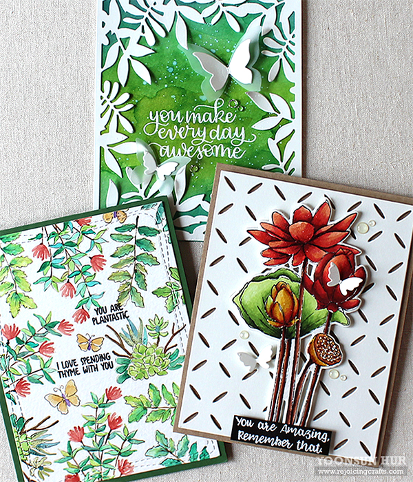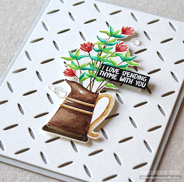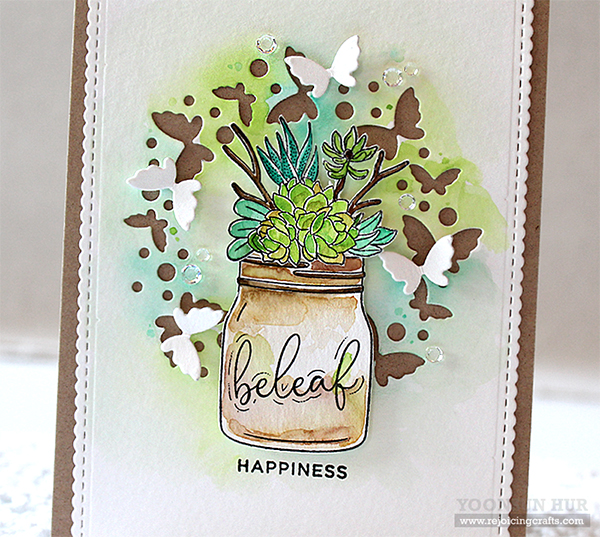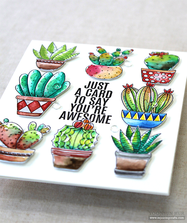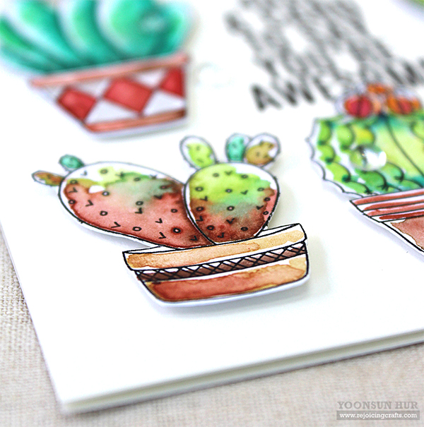 I coloured 8 adorable succulents with Hero Arts Watercolor Wheel, and then fussy cut them.