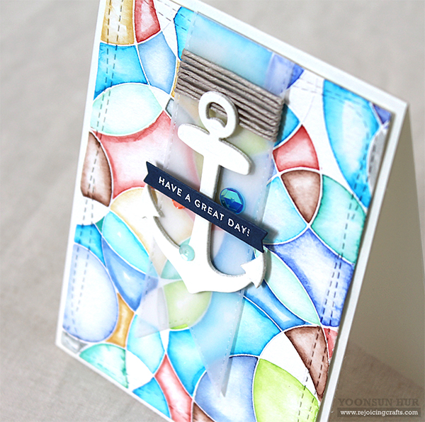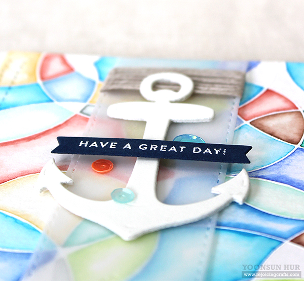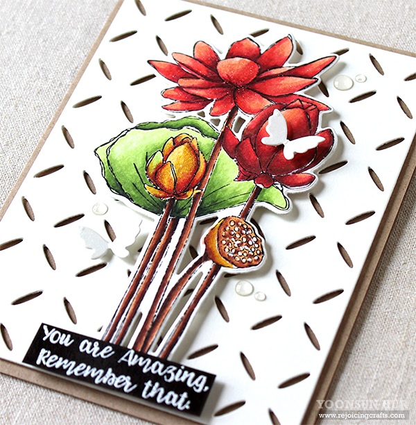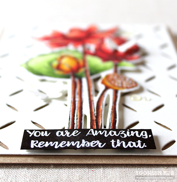 Once the sentiment panel was completely dry, I mounted it on white card base using double-sided tape first, and then added the
