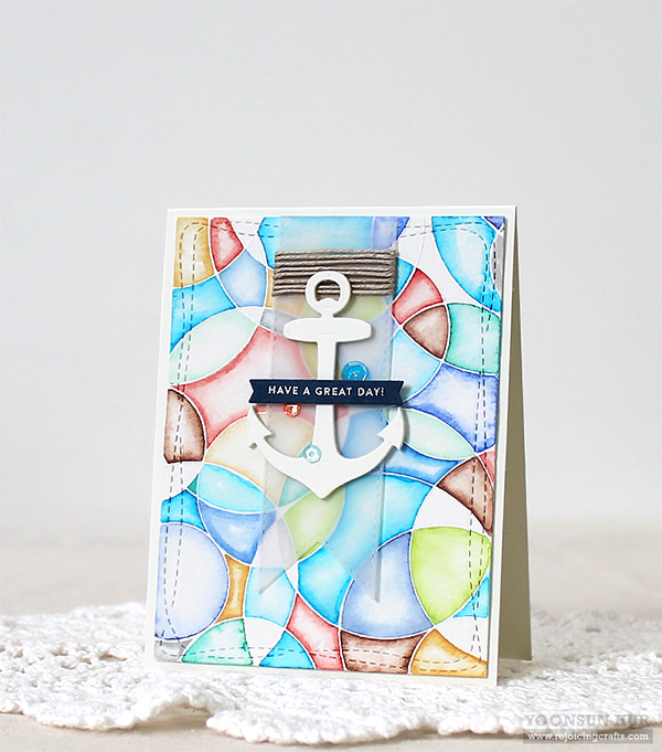 Once the sentiment panel was completely dry, I mounted it on white card base using double-sided tape first, and then added the