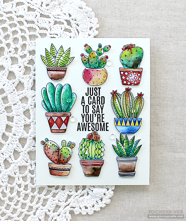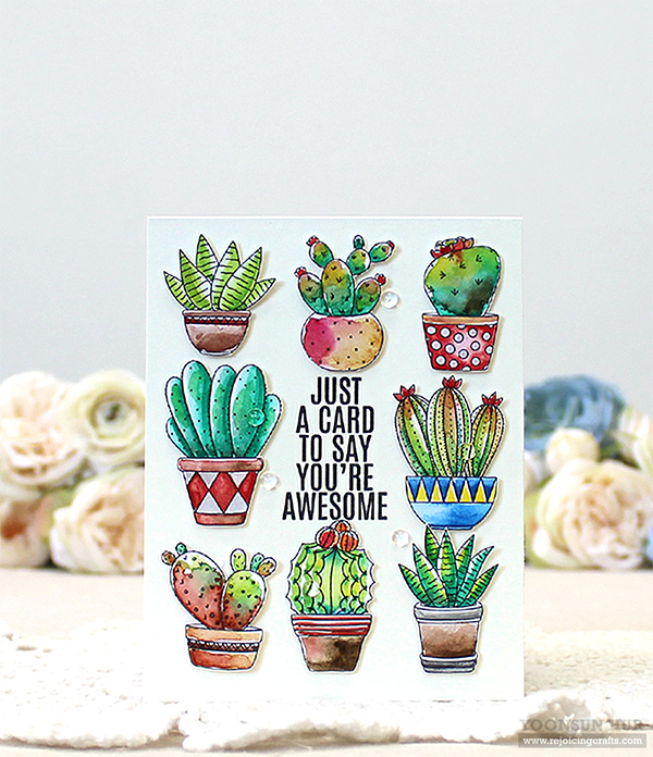 I coloured 8 adorable succulents with Hero Arts Watercolor Wheel, and then fussy cut them.