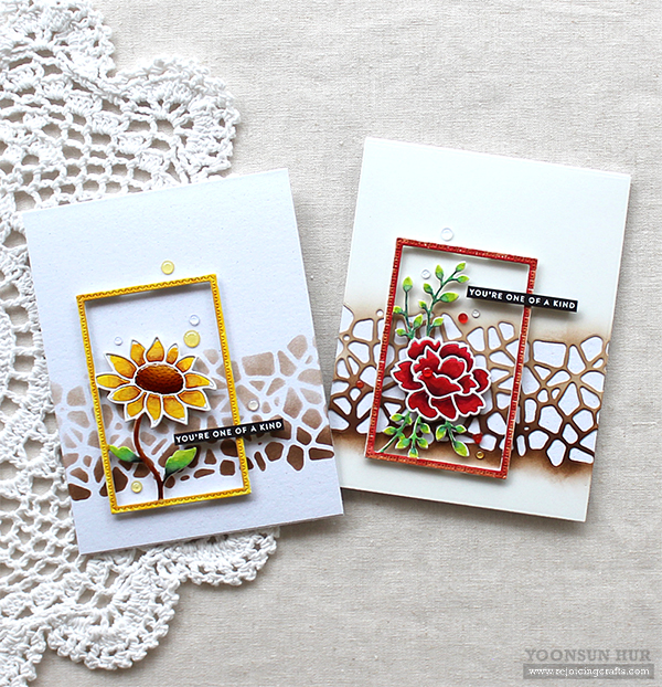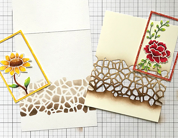 I die cut floral frames from watercolour paper first, and then coloured them with